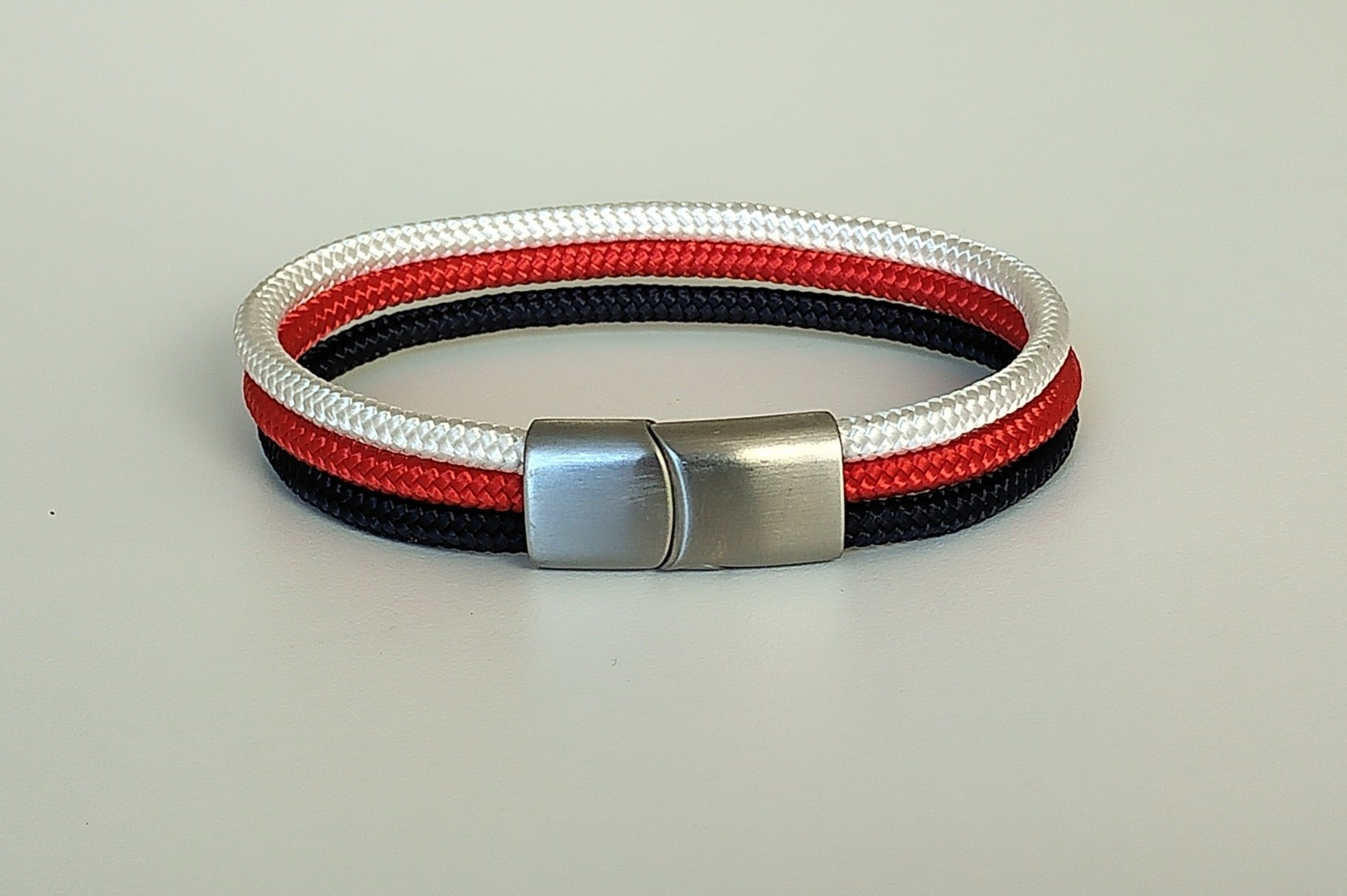 Les bracelets nautiques sont réalisés à partir de nœuds marins et de matières de qualité (cordage marin en polyester issus des sports nautiques et du yachting). Leur tenue (aucun effet de rétrécissement ou d'élasticité) et leurs couleurs ne s'altèrent pas avec le temps, même au contact de l'eau (salée, chlorée ou chaude). Les fermoirs en acier inoxydable garantissent la tenue et la solidité de nos bracelets.