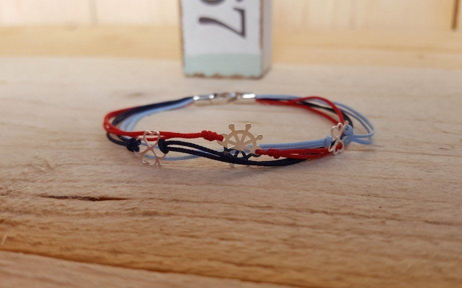 Nautische Armbänder sind aus Meeresknoten und hochwertigen Materialien, marine Polyester-Seil aus Wassersport und Segeln. Ihre Outfits (keine schrumpfenden oder elastischen Effekte) und ihre Farben verschlechtern sich im Laufe der Zeit nicht, auch nicht in Kontakt mit Wasser (salzig, chloriert oder heiß). Die Edelstahlschließen und die Silberschließe garantieren den Halt und die Stärke unserer Armbänder.