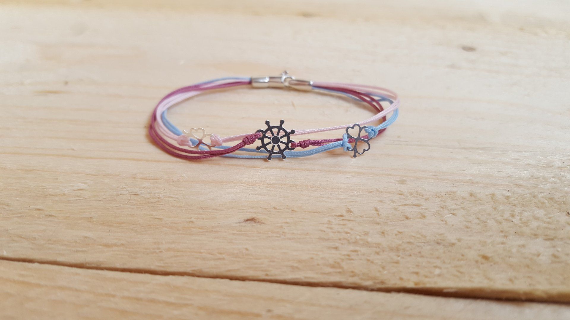 I braccialetti nautici sono fatti da nodi marini e materiali di qualità, corda in poliestere marina da sport acquatici e da diporto. I loro abiti (nessun effetto restringente o elastico) e i loro colori non si deteriorano nel tempo, anche a contatto con l'acqua (salato, clorurato o caldo). I fermagli in acciaio inossidabile e la chiusura in argento garantiscono la tenuta e la forza dei nostri braccialetti.