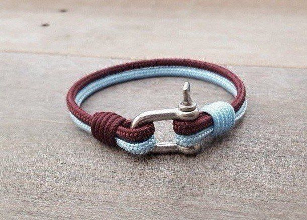 Nautische armbanden zijn gemaakt van maritieme knopen en hoogwaardige materialen, polyester marine touw van watersport en zeilen. Hun gedrag (geen krimp of elasticiteitseffect) en hun kleuren verslechteren niet na verloop van tijd, zelfs niet in contact met water (zout, gechloreerd of heet). De roestvrijstalen gespen en zilveren sluiting garanderen het houvast en de sterkte van onze armbanden.