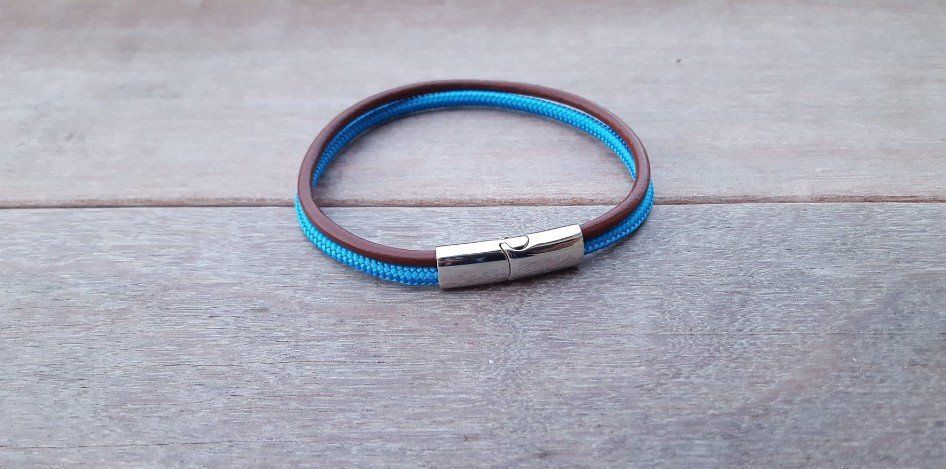 As pulseiras náuticas são feitas de nós marinhos e materiais de qualidade, corda de poliéster marinha de esportes aquáticos e iates. Seu comportamento (sem efeito de encolhimento ou elasticidade) e suas cores não se deterioram ao longo do tempo, mesmo em contato com água (salgada, clorada ou quente). Os fechos de aço inoxidável e o fecho de prata garantem a força e a força de nossas pulseiras.